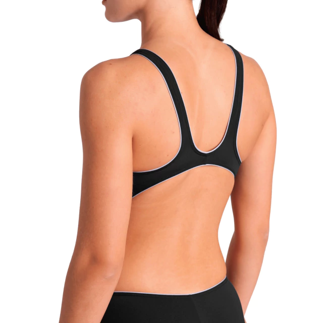 Desde atrás, parece una bikini; pero en realidad, es mucho más. El nuevo traje de baño arena One Next está confeccionado a partir de una sola pieza de tela, lo que garantiza un ajuste impecable y sin costuras incómodas. Su diseño único combina un escote alto con un amplio recorte que revela la espalda y realza la silueta en la zona de la cintura. Con terminaciones prolijas y ribetes en contratono, este traje de baño es el protagonista indiscutido de esta temporada.